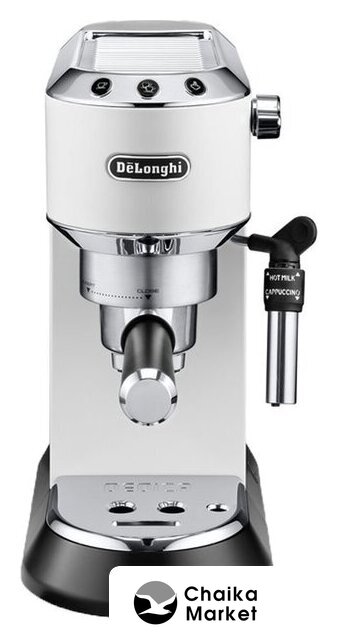 рожковая помповая кофеварка, 1450 Вт, корпус металл/пластик, капучинатор автоматический, используемый кофе: молотый, цвет нержавеющая сталь/черный
