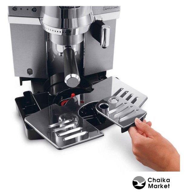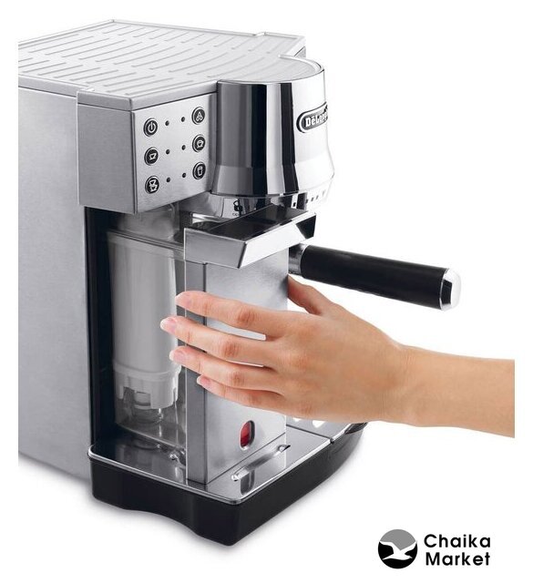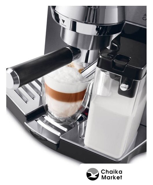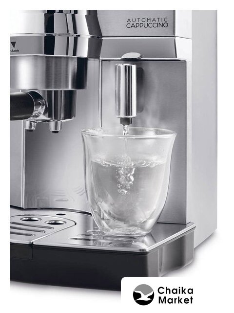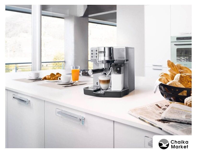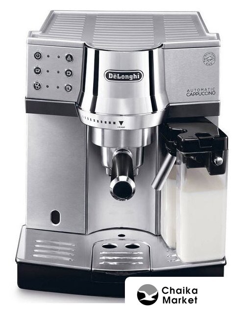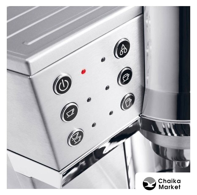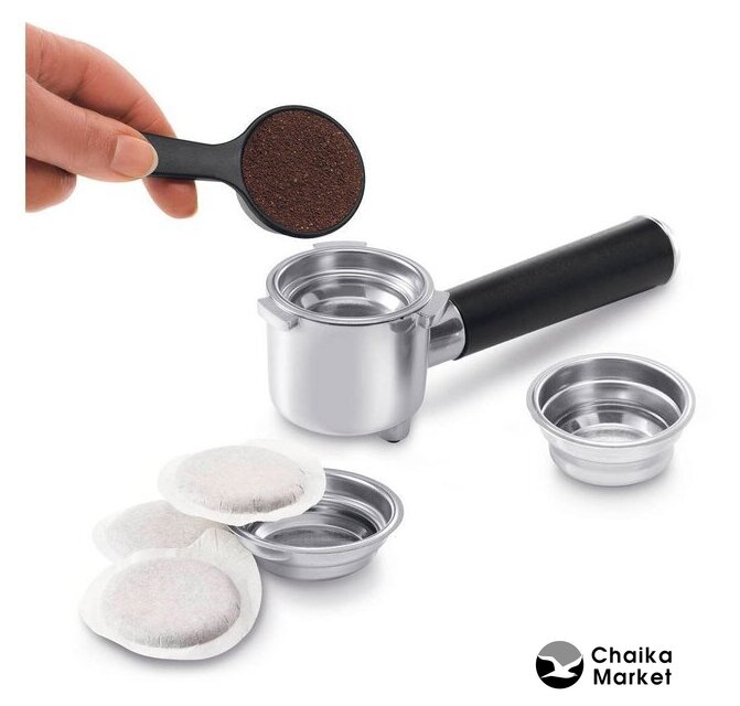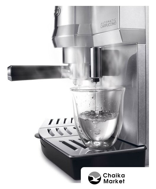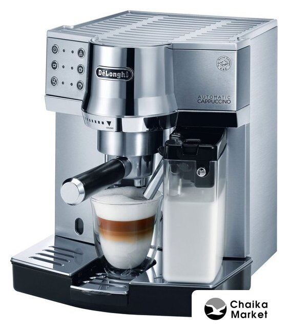 рожковая помповая кофеварка, корпус металл/пластик, капучинатор автоматический, используемый кофе: молотый/чалды, цвет серебристый/черный