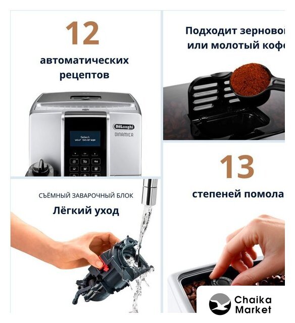 кофемашина, 1500 Вт, корпус пластик, капучинатор автоматический, используемый кофе: молотый/зерновой, цвет черный