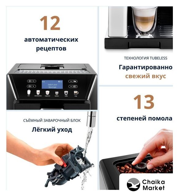 | Программы приготовления | эспрессо, американо, капучино, латте макиато, ристретто, флэт уайт, латте, доппио, лонг блэк |