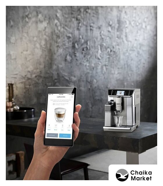 кофемашина, корпус пластик, капучинатор автоматический, используемый кофе: молотый/зерновой, цвет нержавеющая сталь/черный