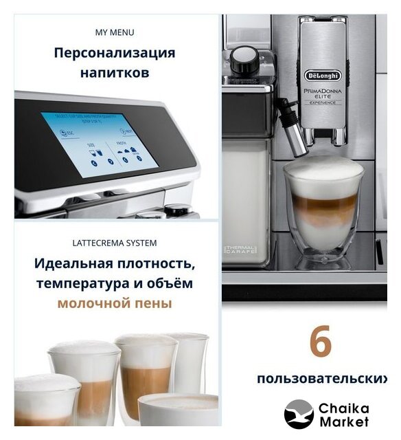 | Программы приготовления | эспрессо, лунго, американо, капучино, латте макиато, эспрессо макиато, флэт уайт, латте, доппио, горячее молоко, горячий шоколад, холодный кофе |