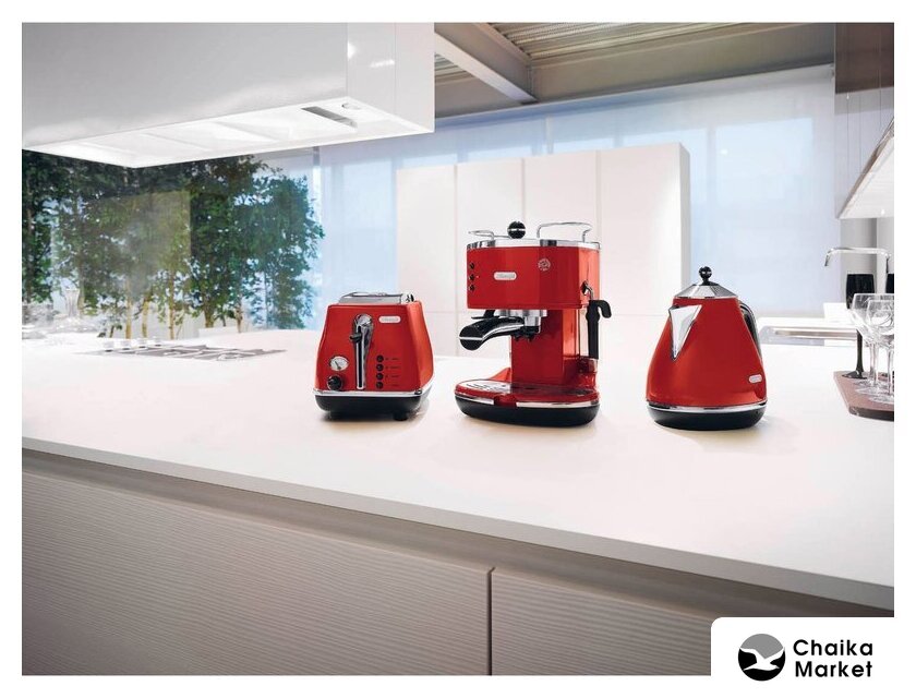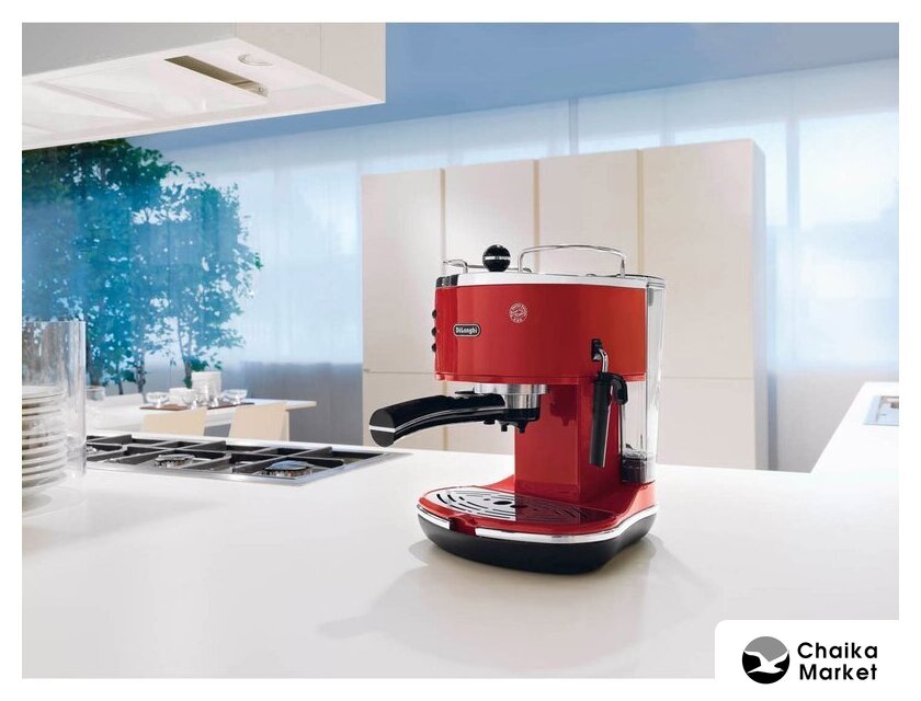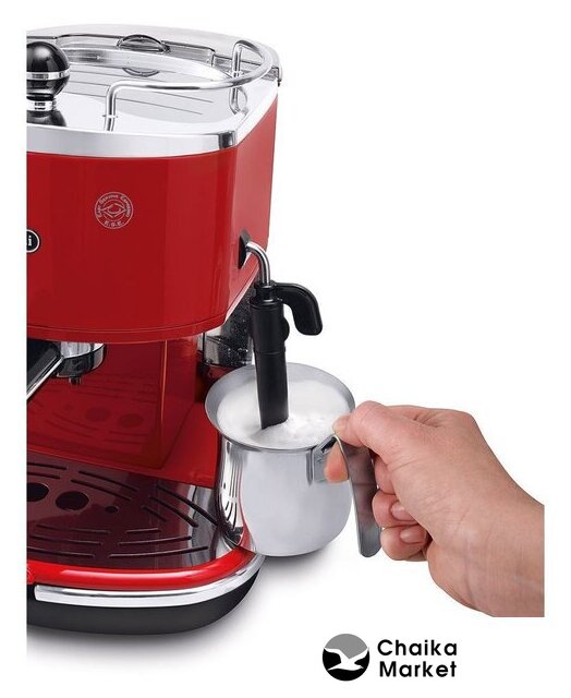 рожковая помповая кофеварка, капучинатор автоматический, используемый кофе: молотый, цвет красный