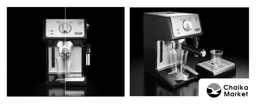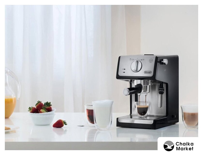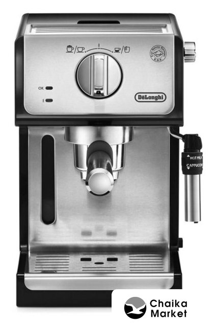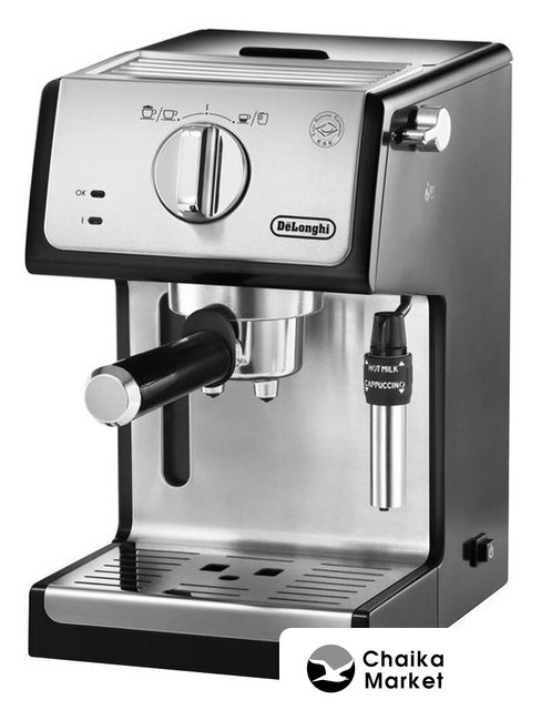 рожковая помповая кофеварка, 1450 Вт, корпус металл/пластик, капучинатор автоматический, используемый кофе: молотый, цвет нержавеющая сталь/черный