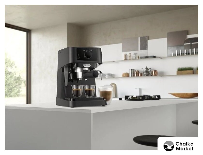 рожковая помповая кофеварка, 850 Вт, корпус металл/пластик, капучинатор ручной, используемый кофе: молотый, цвет нержавеющая сталь/черный