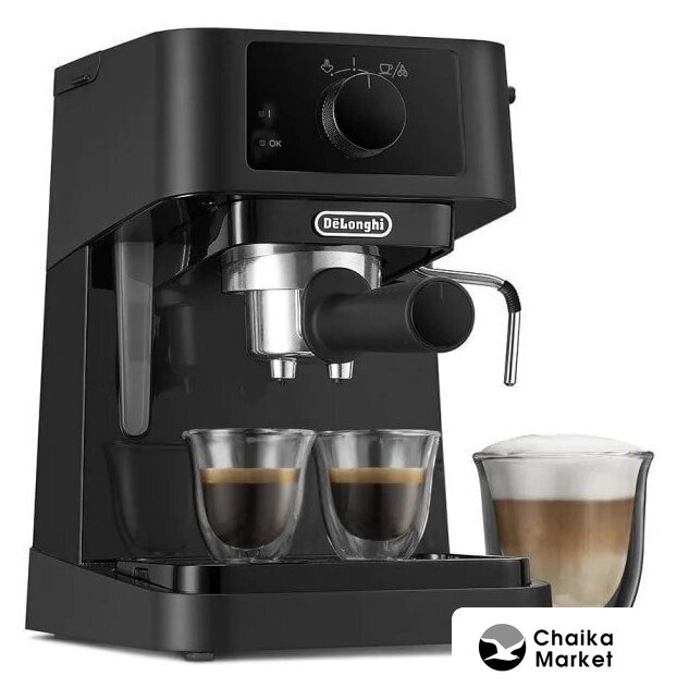 рожковая помповая кофеварка, 1400 Вт, корпус металл/пластик, капучинатор автоматический, используемый кофе: молотый, цвет нержавеющая сталь/черный
