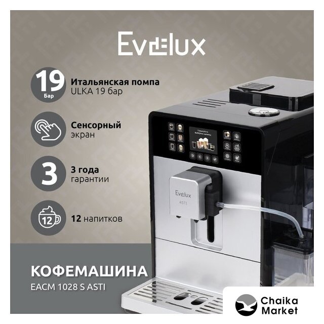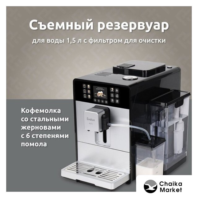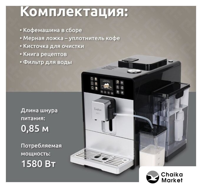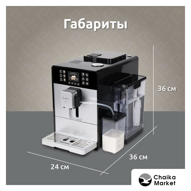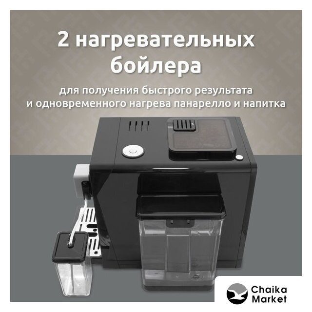 кофемашина, 1450 Вт, корпус пластик, капучинатор автоматический, используемый кофе: молотый/зерновой, цвет нержавеющая сталь/черный