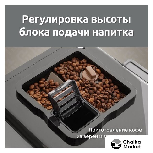 кофемашина, 1450 Вт, корпус пластик, капучинатор автоматический, используемый кофе: молотый/зерновой, цвет титан/черный
