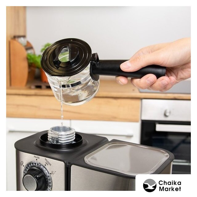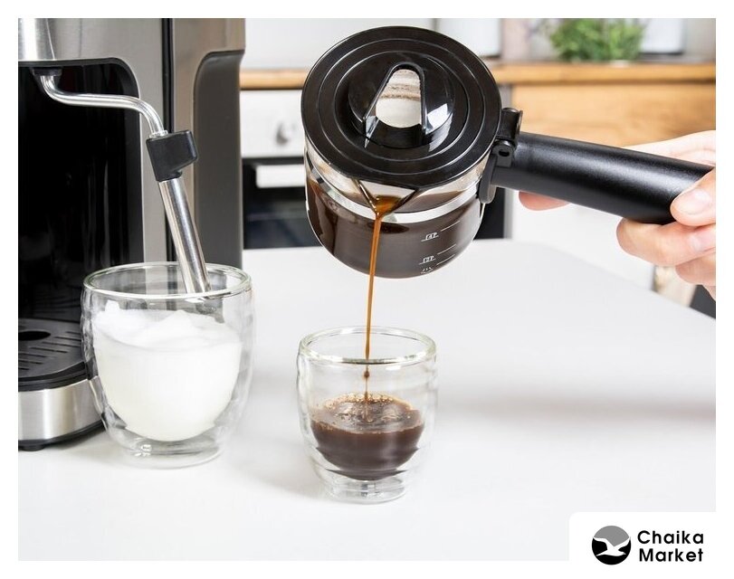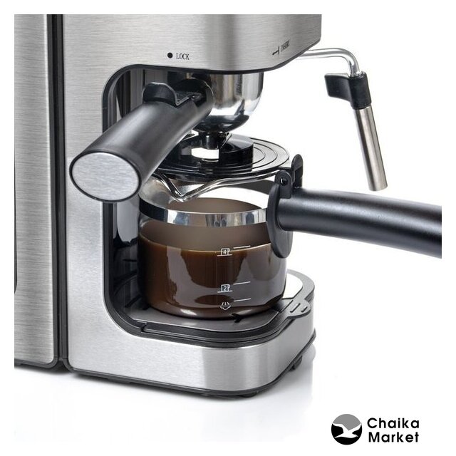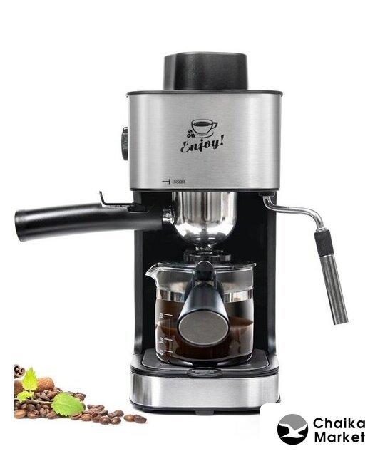 рожковая бойлерная кофеварка, 800 Вт, корпус пластик, капучинатор ручной, используемый кофе: молотый, цвет черный