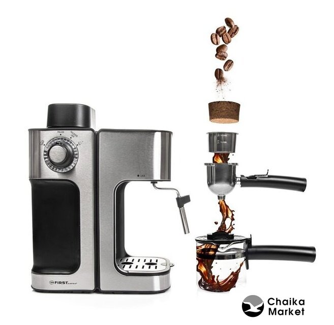 рожковая бойлерная кофеварка, 1450 Вт, корпус металл/пластик, капучинатор ручной, используемый кофе: молотый, цвет нержавеющая сталь/черный