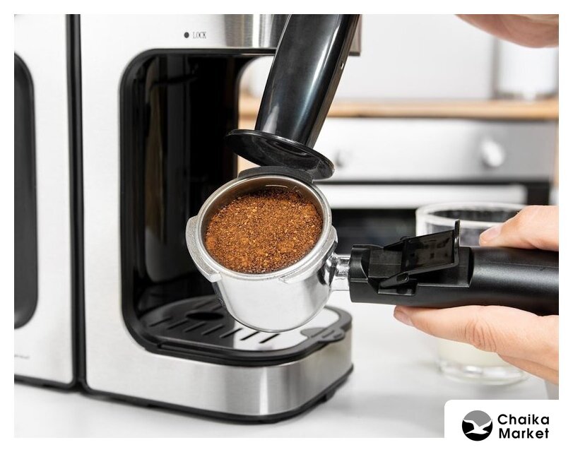 рожковая бойлерная кофеварка, 1050 Вт, корпус металл/пластик, капучинатор ручной, используемый кофе: молотый, цвет черный