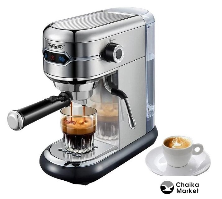 рожковая помповая кофеварка, 1450 Вт, корпус металл, капучинатор ручной, используемый кофе: молотый, цвет серебристый