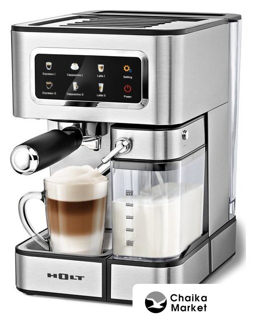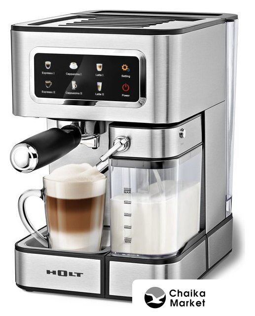 1350 Вт, корпус металл/пластик, капучинатор автоматический, используемый кофе: молотый, цвет серебристый/черный