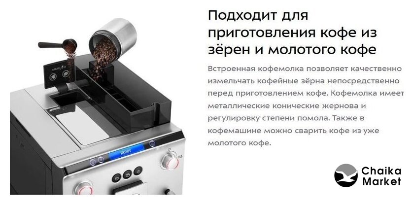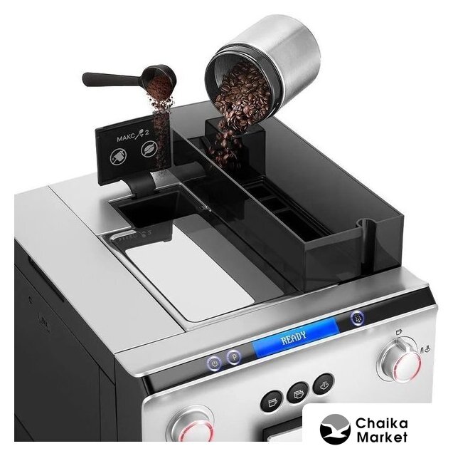 кофемашина, 1450 Вт, корпус металл, капучинатор автоматический, используемый кофе: молотый/зерновой, цвет серебристый/черный