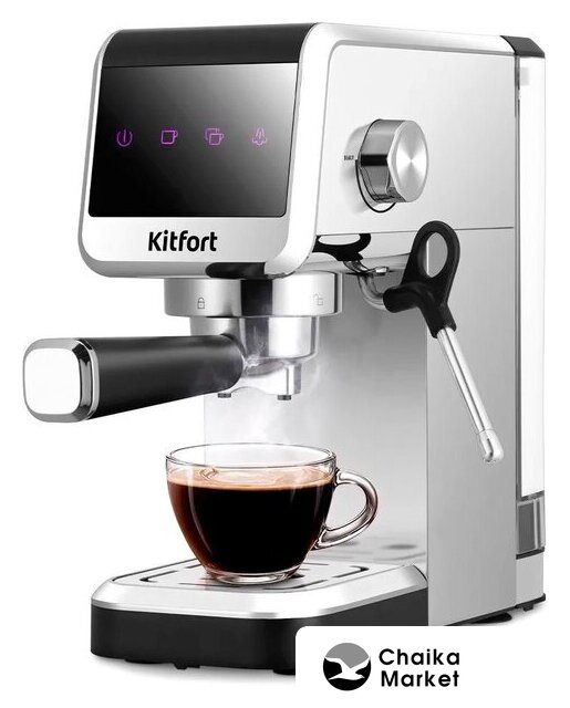 1350 Вт, корпус пластик, капучинатор ручной, используемый кофе: молотый, цвет серебристый