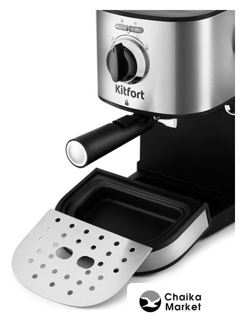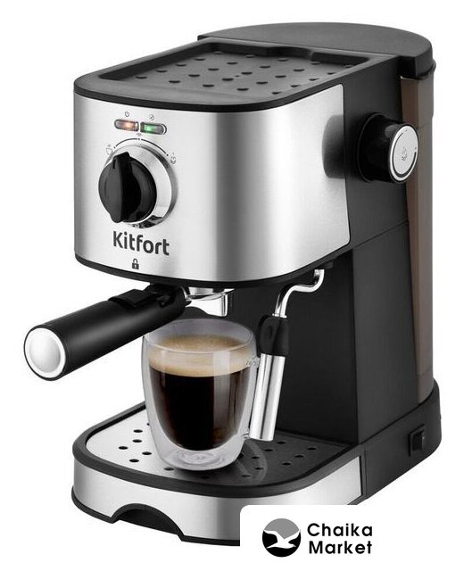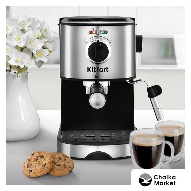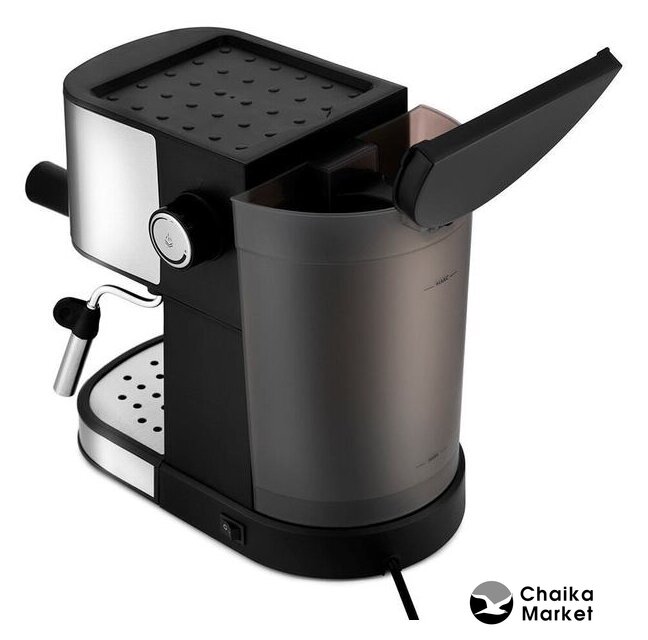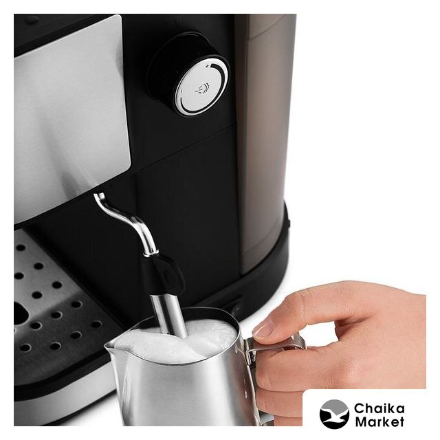 рожковая бойлерная кофеварка, 1100 Вт, корпус металл/пластик, капучинатор ручной, используемый кофе: молотый, цвет нержавеющая сталь/черный