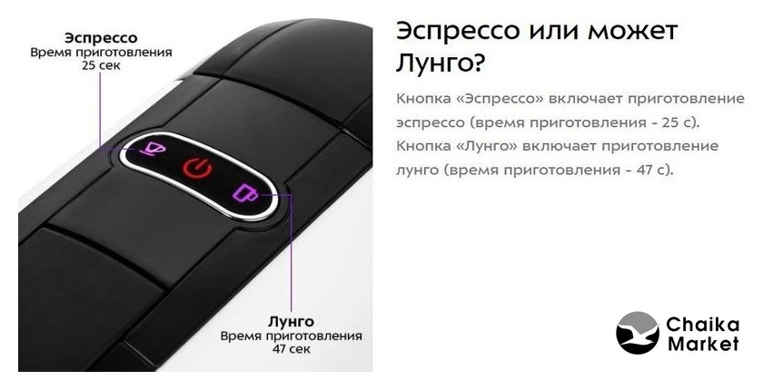 | Программы приготовления | эспрессо, лунго |