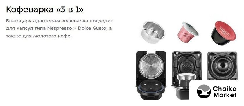 | Тип капсул | Nespresso Original, Dolce Gusto |