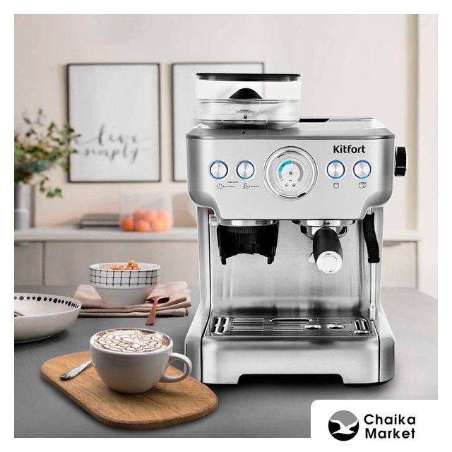 рожковая помповая кофеварка, 900 Вт, корпус металл/пластик, капучинатор ручной, используемый кофе: молотый/зерновой, цвет белый/черный