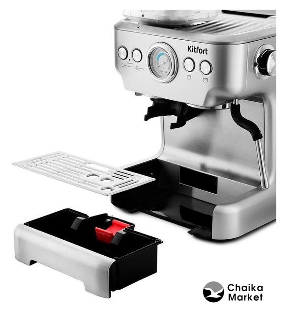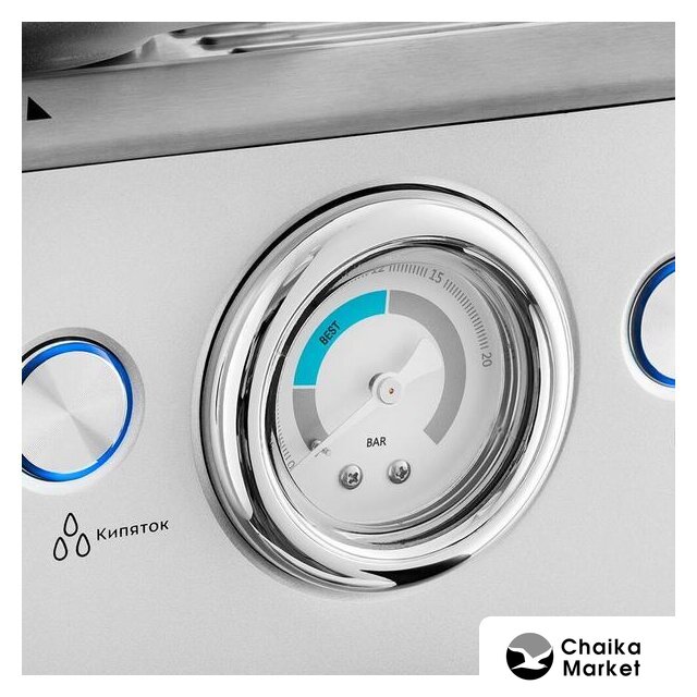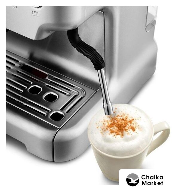 рожковая помповая кофеварка, 1350 Вт, корпус металл/пластик, капучинатор автоматический, используемый кофе: молотый, цвет нержавеющая сталь/черный