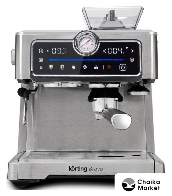 кофемашина, корпус пластик, капучинатор ручной, используемый кофе: молотый/зерновой, цвет нержавеющая сталь/черный