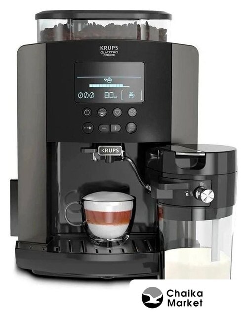 кофемашина, 1450 Вт, корпус пластик, капучинатор автоматический, используемый кофе: молотый/зерновой, цвет черный