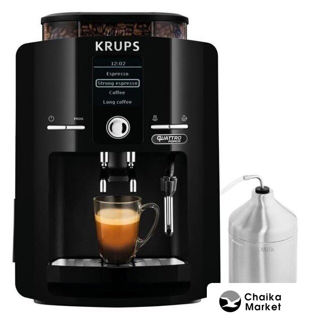 кофемашина, 1455 Вт, корпус пластик, капучинатор автоматический, используемый кофе: молотый/зерновой, цвет черный