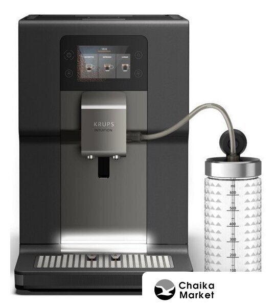 кофемашина, 1450 Вт, корпус металл/пластик, капучинатор автоматический, используемый кофе: молотый/зерновой, цвет серый/черный