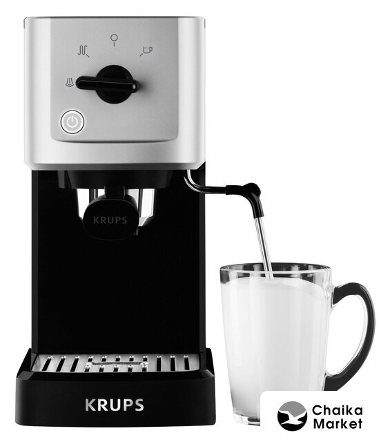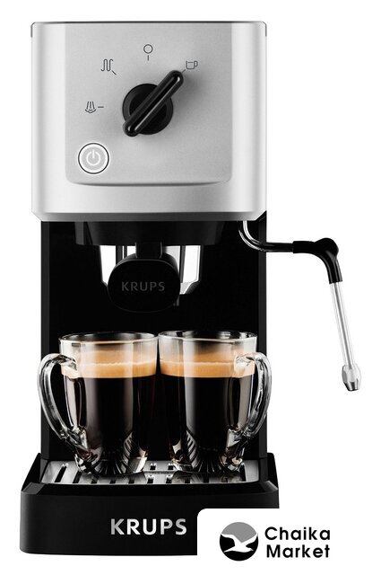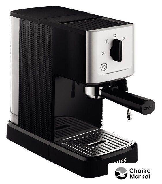 1100 Вт, корпус металл/пластик, капучинатор ручной, используемый кофе: молотый, цвет серебристый/черный