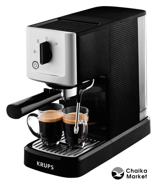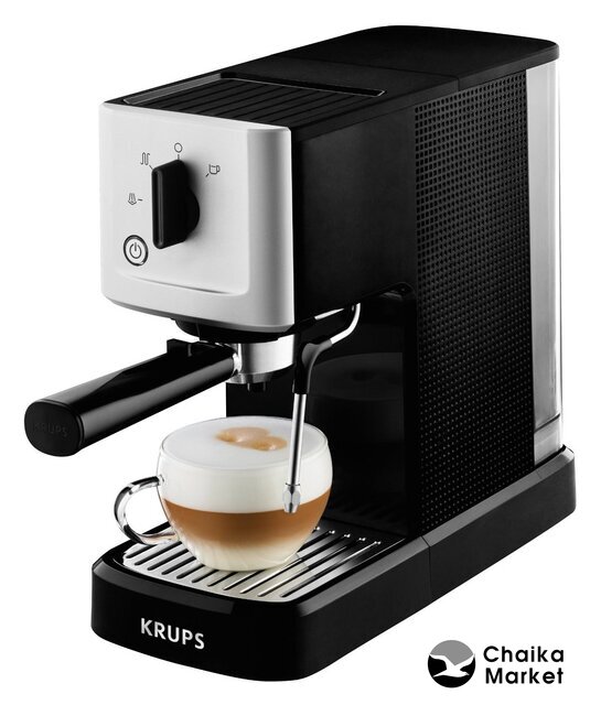 1050 Вт, корпус металл/пластик, капучинатор ручной, используемый кофе: молотый, цвет белый/серебристый