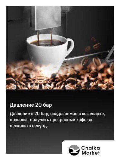 кофемашина, 1500 Вт, корпус металл/пластик, капучинатор автоматический, используемый кофе: зерновой, цвет серебристый/черный