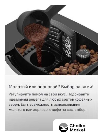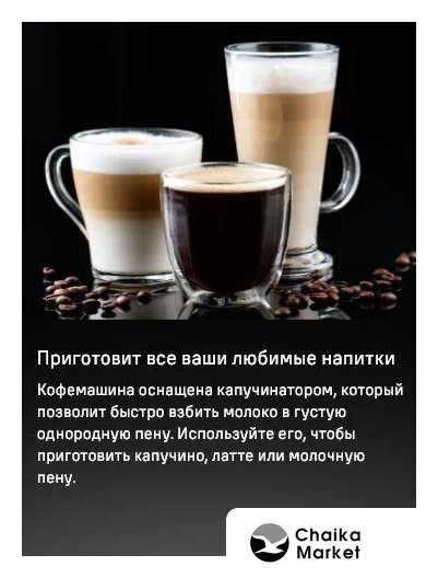 кофемашина, корпус пластик, капучинатор автоматический, используемый кофе: молотый/зерновой, цвет черный