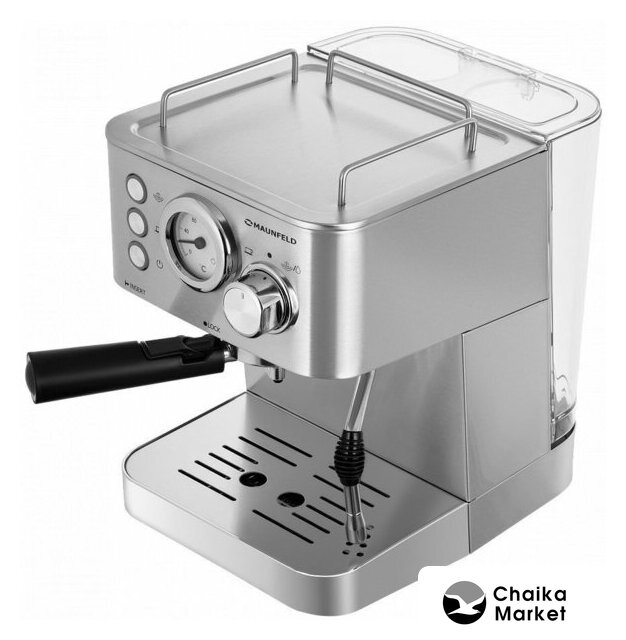 рожковая помповая кофеварка, 1450 Вт, корпус металл/пластик, капучинатор автоматический, используемый кофе: молотый, цвет нержавеющая сталь/черный