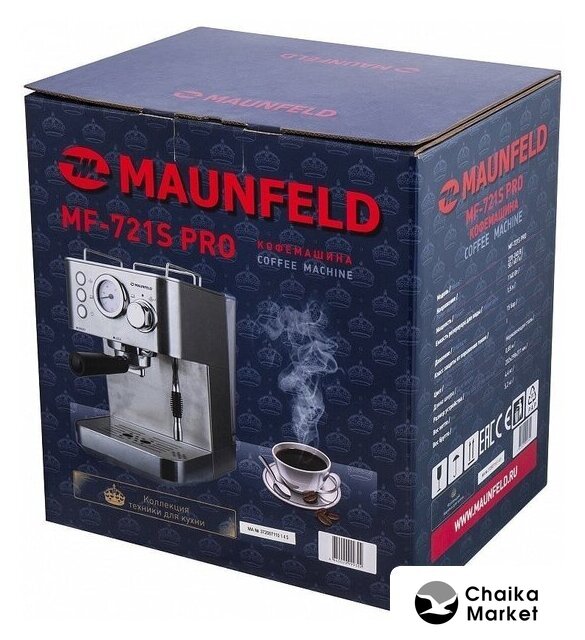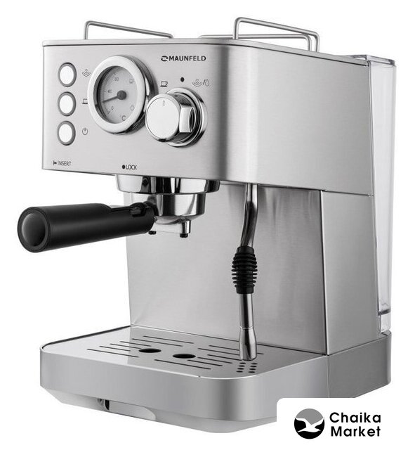 рожковая помповая кофеварка, 1465 Вт, корпус металл, капучинатор ручной, используемый кофе: молотый, цвет нержавеющая сталь