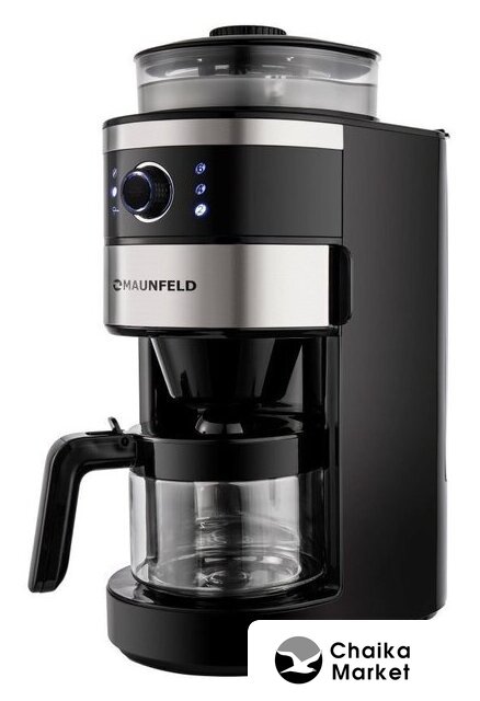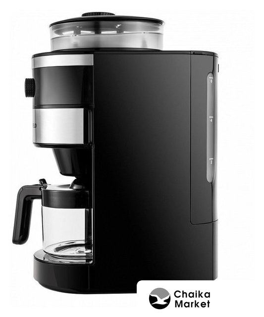 капельная кофеварка, 1050 Вт, корпус металл/пластик, используемый кофе: молотый/зерновой, цвет нержавеющая сталь/черный