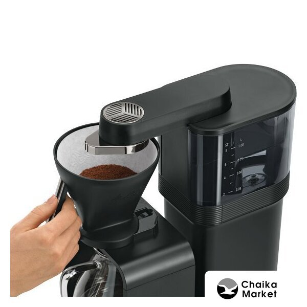 капельная кофеварка, 1000 Вт, корпус пластик, используемый кофе: молотый/зерновой, цвет нержавеющая сталь/черный