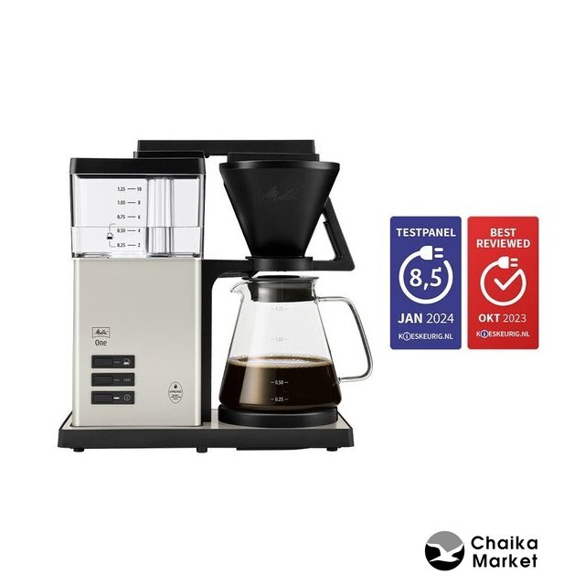 капельная кофеварка, корпус металл/пластик, используемый кофе: молотый/зерновой, цвет нержавеющая сталь/черный