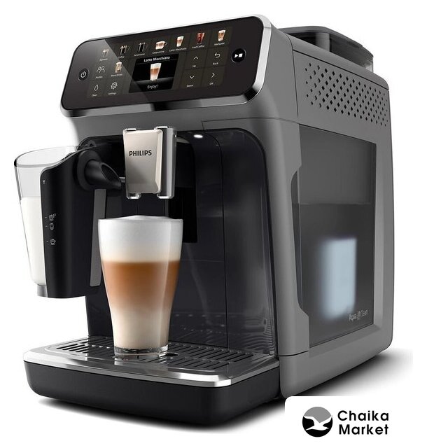 кофемашина, 1455 Вт, корпус пластик, капучинатор автоматический, используемый кофе: молотый/зерновой, цвет серебристый/черный