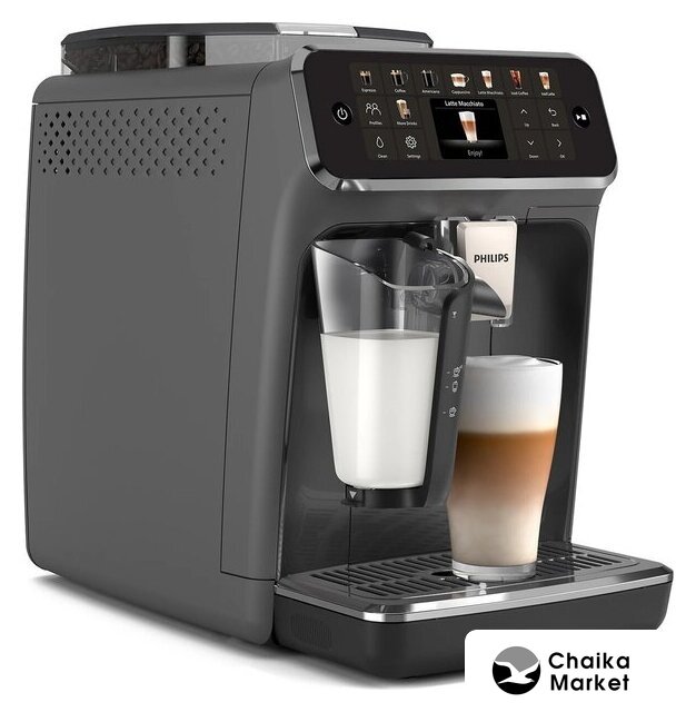 кофемашина, 1450 Вт, корпус металл/пластик, капучинатор автоматический, используемый кофе: молотый/зерновой, цвет темно-серый