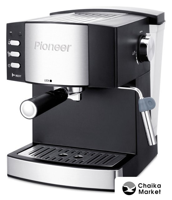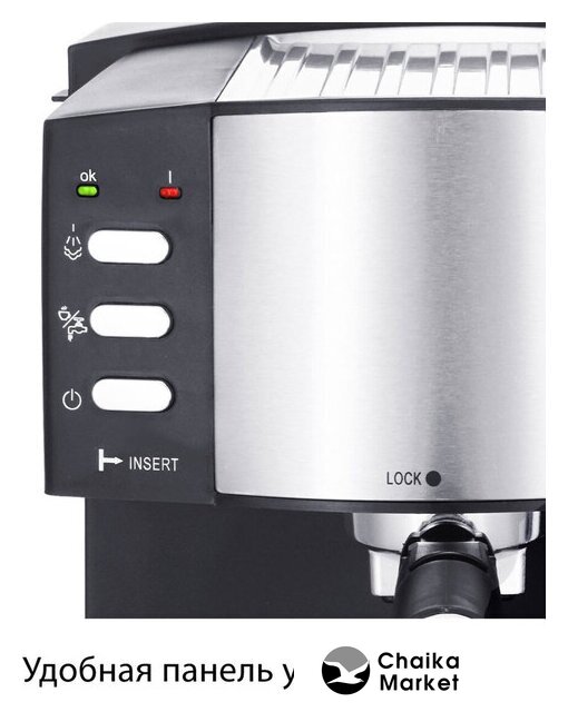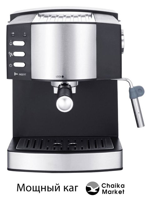 рожковая бойлерная кофеварка, 850 Вт, корпус металл/пластик, капучинатор ручной, используемый кофе: молотый, цвет нержавеющая сталь/черный