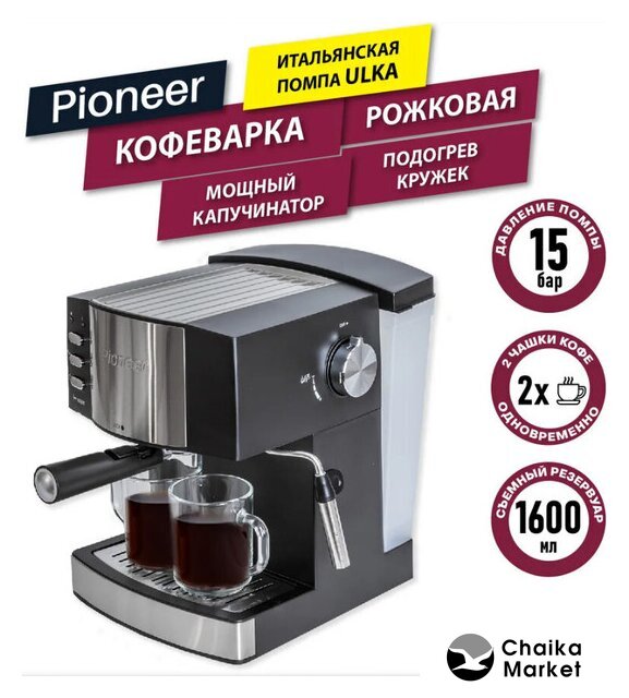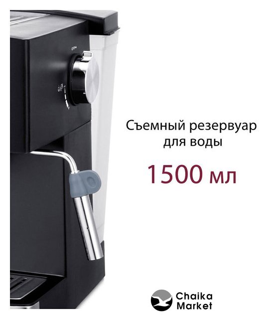 рожковая бойлерная кофеварка, 1500 Вт, корпус металл/пластик, капучинатор ручной, используемый кофе: молотый, цвет черный