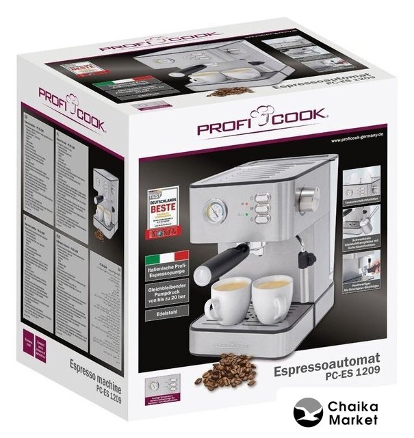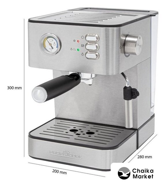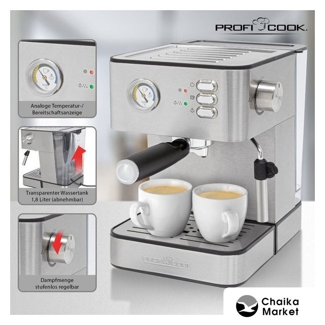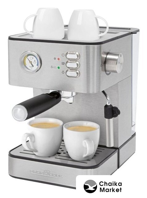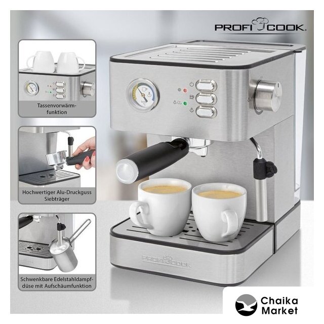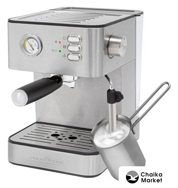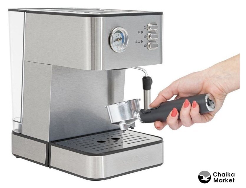рожковая помповая кофеварка, 850 Вт, корпус металл/пластик, капучинатор ручной, используемый кофе: молотый, цвет нержавеющая сталь/черный