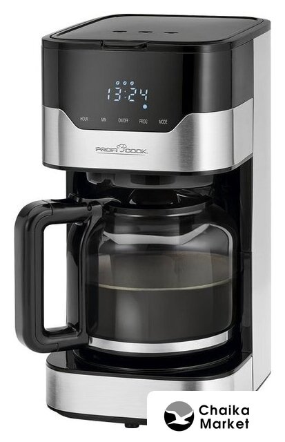 капельная кофеварка, корпус металл/пластик, используемый кофе: молотый, цвет нержавеющая сталь/черный