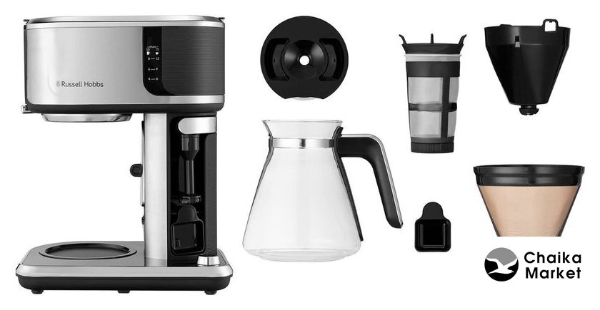 капельная кофеварка, корпус металл/пластик, используемый кофе: молотый, цвет черный