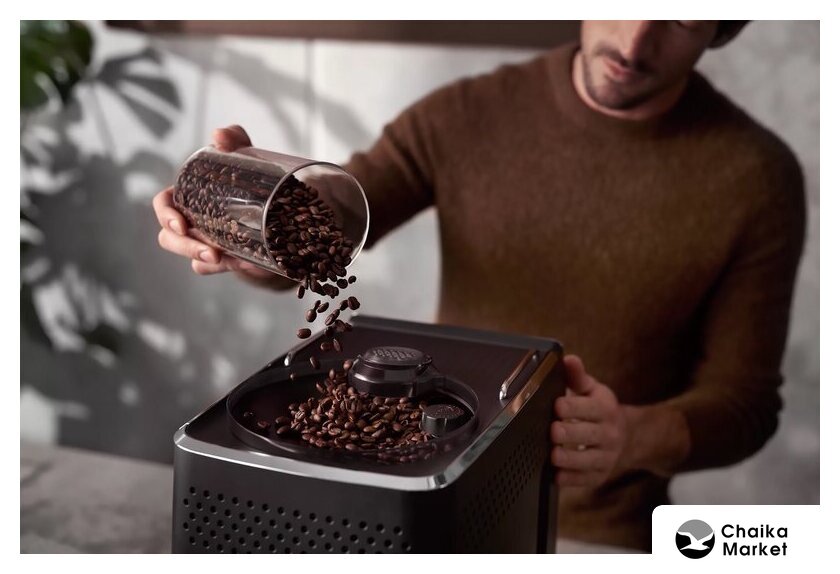 кофемашина, 1455 Вт, корпус пластик, капучинатор автоматический, используемый кофе: молотый/зерновой, цвет нержавеющая сталь/черный