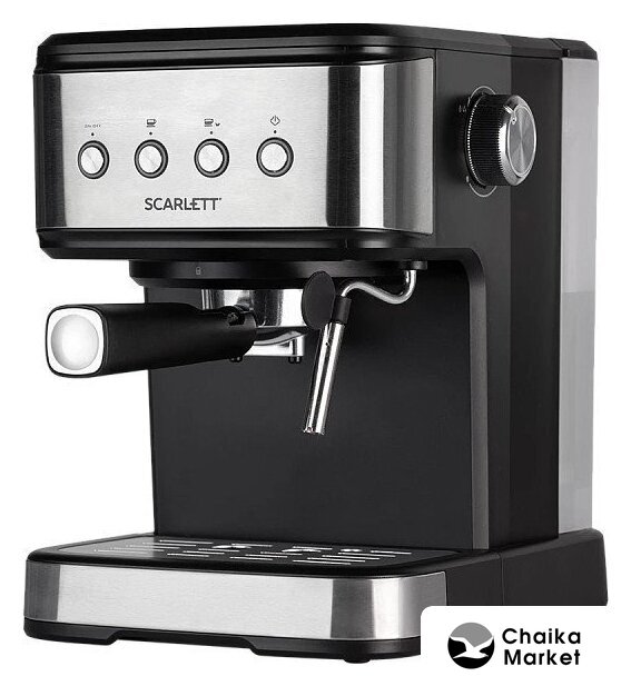 рожковая помповая кофеварка, 850 Вт, корпус металл/пластик, капучинатор ручной, используемый кофе: молотый, цвет нержавеющая сталь/черный