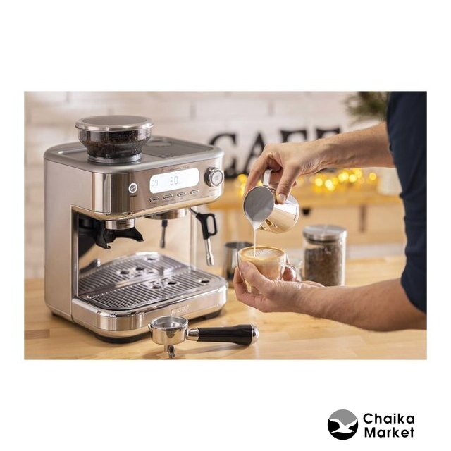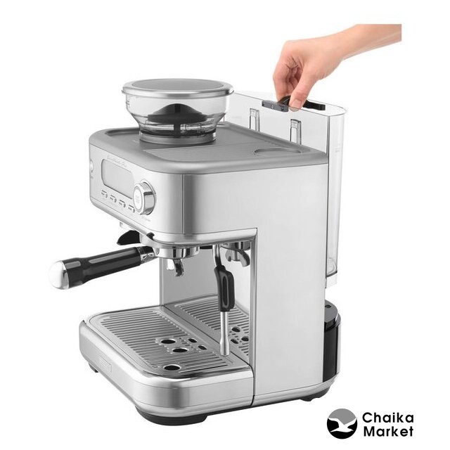 рожковая помповая кофеварка, 1550 Вт, корпус металл, капучинатор ручной, используемый кофе: зерновой/молотый, цвет нержавеющая сталь