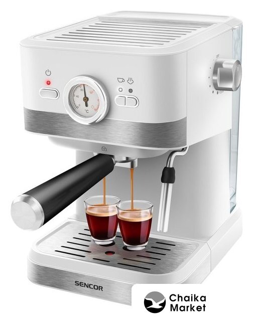 1450 Вт, корпус металл/пластик, капучинатор ручной, используемый кофе: молотый, цвет белый
