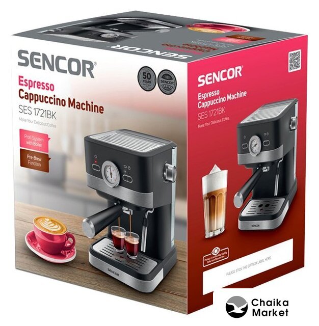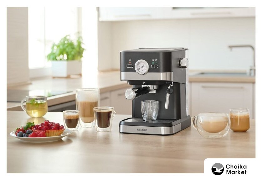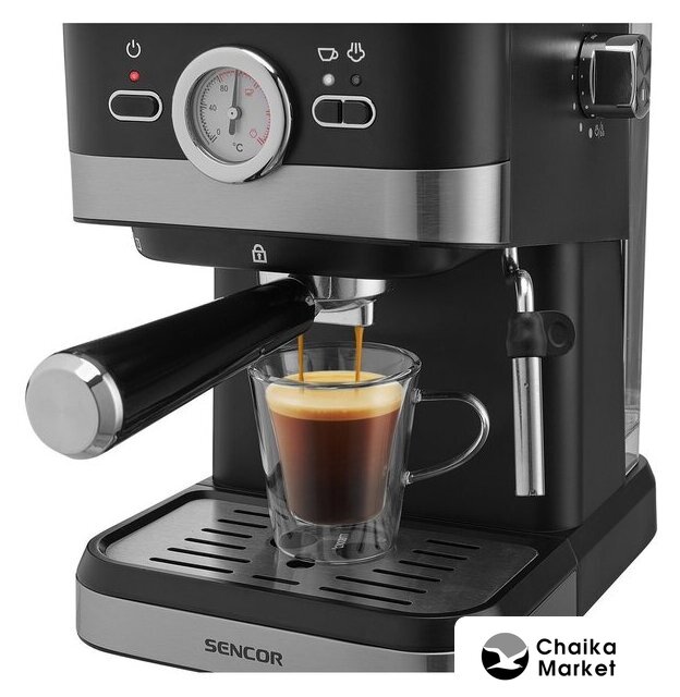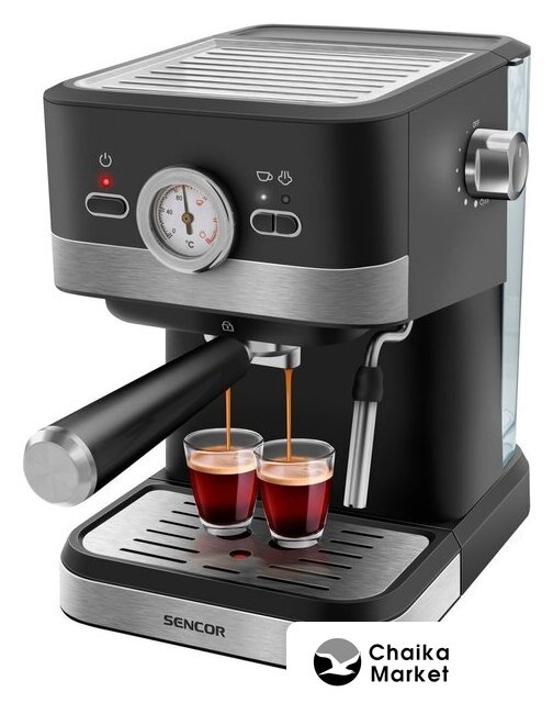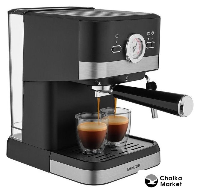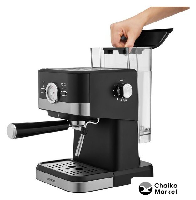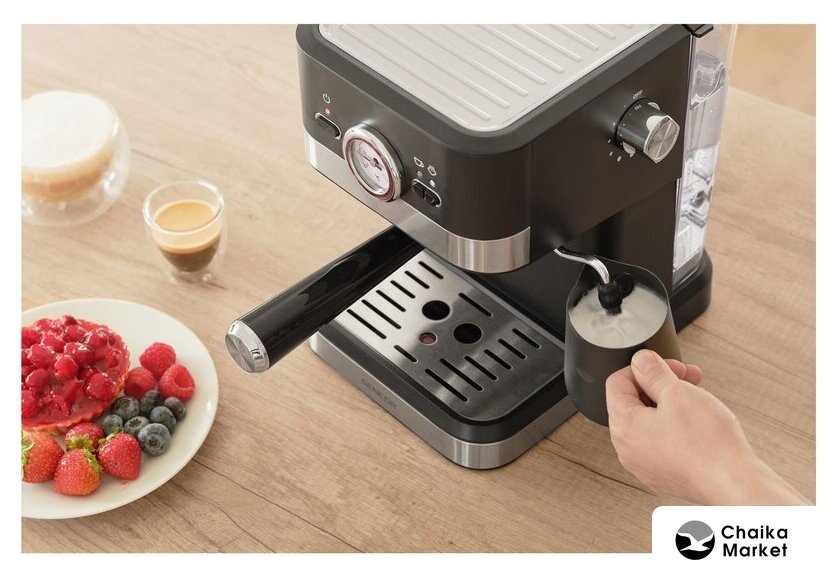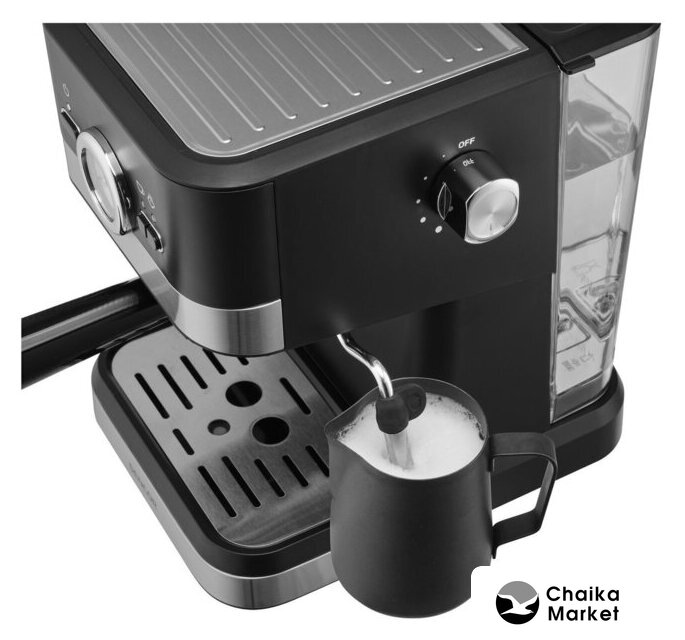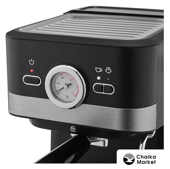 рожковая бойлерная кофеварка, 800 Вт, корпус пластик, капучинатор ручной, используемый кофе: молотый, цвет черный