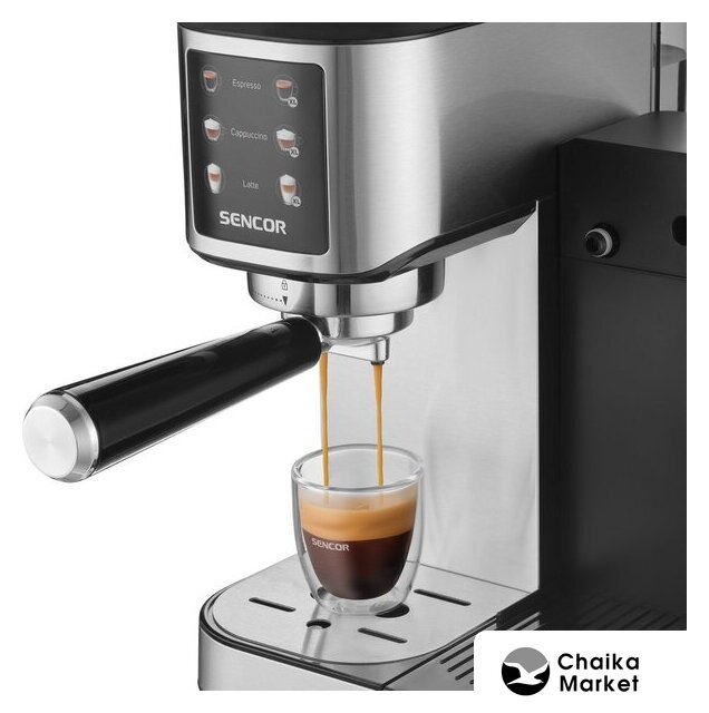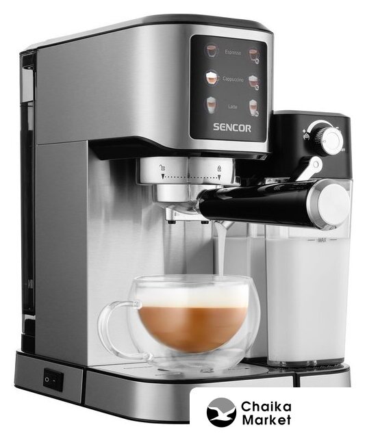 рожковая помповая кофеварка, 1550 Вт, корпус металл/пластик, капучинатор ручной, используемый кофе: зерновой, цвет нержавеющая сталь/черный